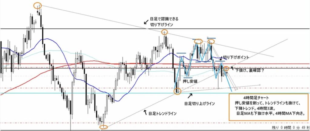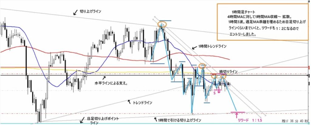 1時間のダウが崩れれば4時間、1時間共に下を向くので、エントリー!