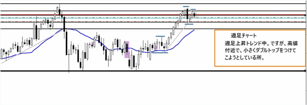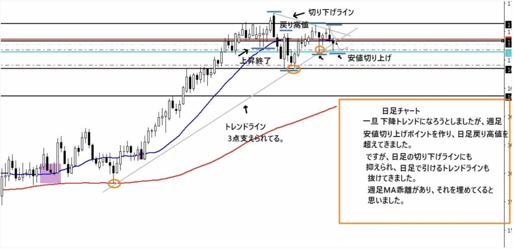 高値圏で、日足は上昇トレンドですが、青🟦日足MA