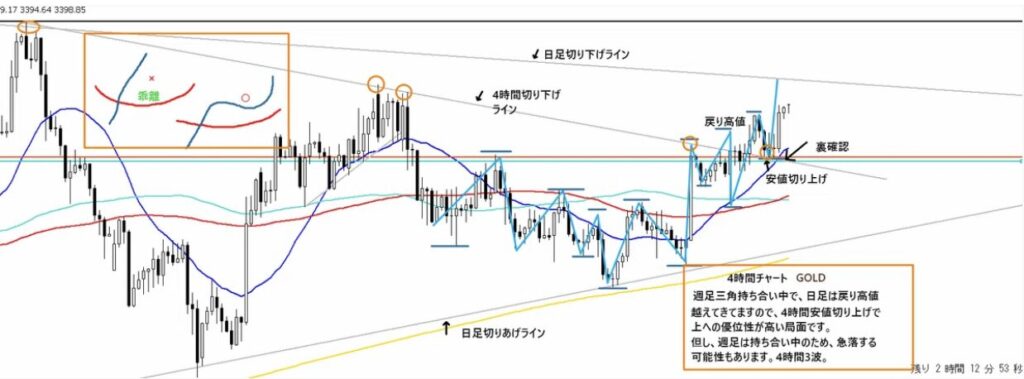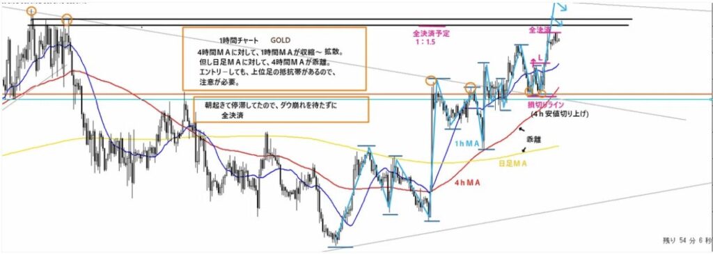 ただ、左のオレンジの枠に、移動平均線の、乖離&収縮を書いてるのですが、乖離しているところは、基本的にやりません。