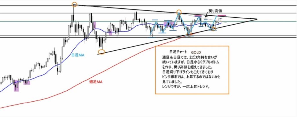 週足MAは勢いをなくしているものの、上昇トレンド。