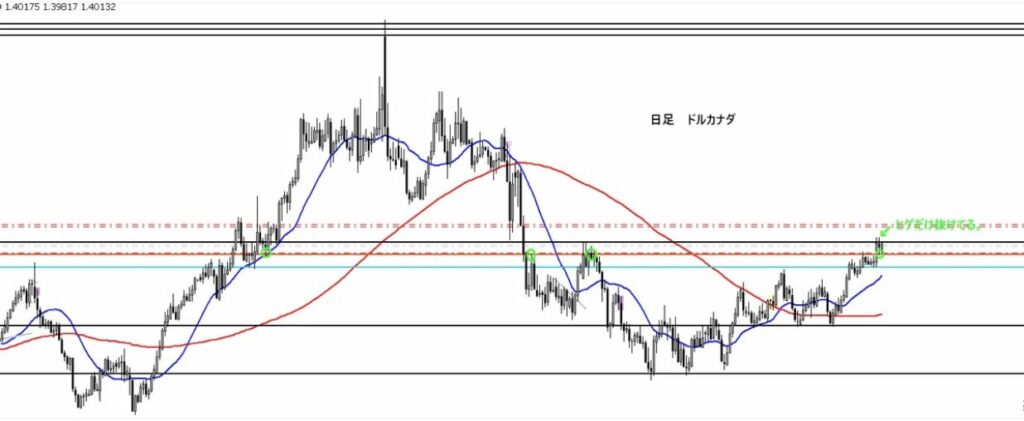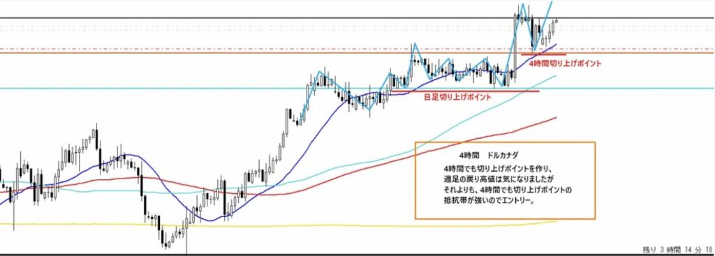 日足の切り上げポイント(水色)&4時間切り上げポイント(赤色)が過去の高値に支えられています。