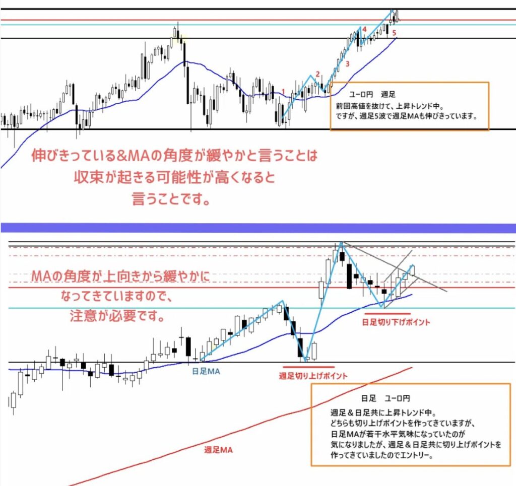 ●その上の時間足の移動平均線が赤🟥